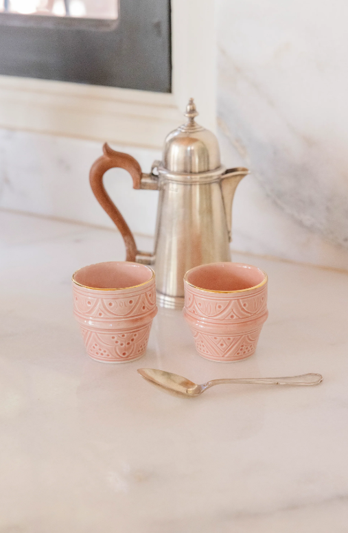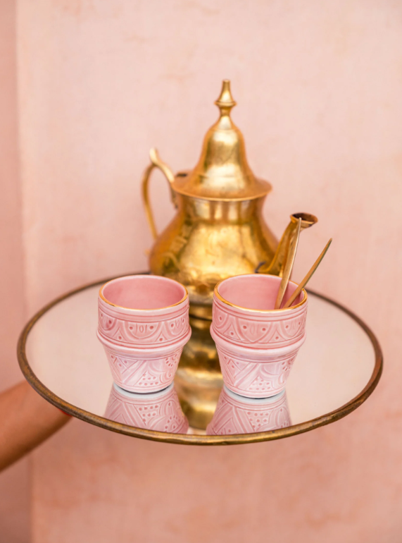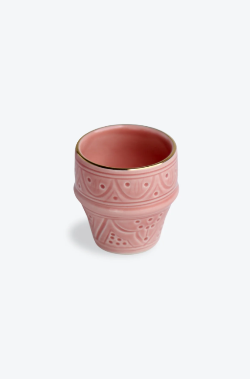Geniet waar je ook bent van je koffie of thee, in deze medium medium cup beldi kaki witgouden elegante cup, geïnspireerd op de Marokkaanse traditie. Een verfijnde break voor een intense espresso of een delicate koffie.