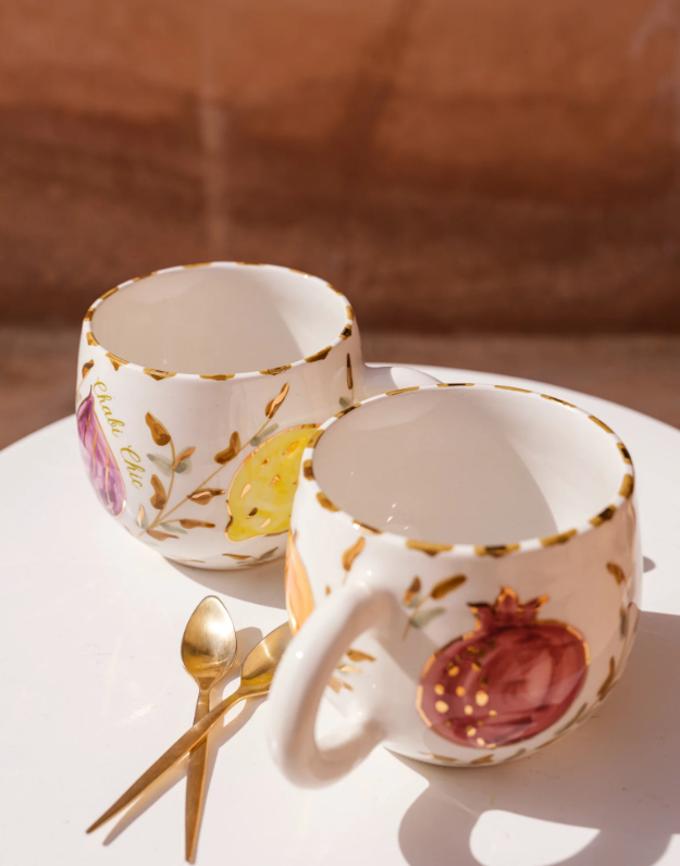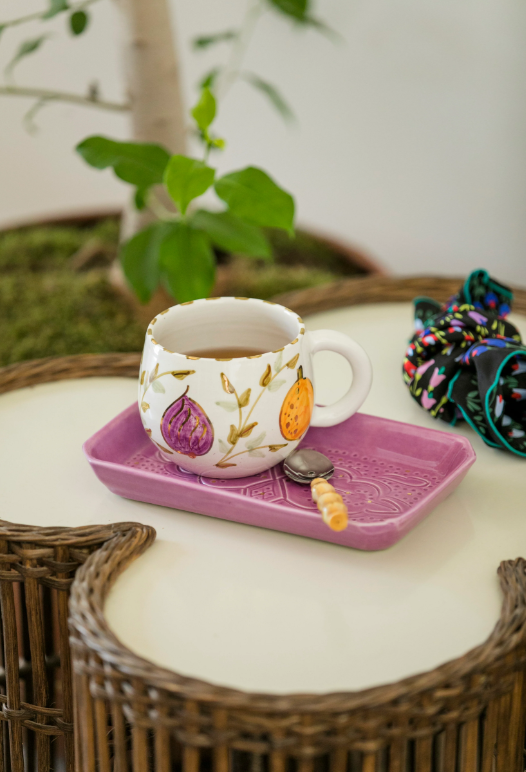 Collectie Tutti Frutti: Een vrolijke collectie waarin fruit lijkt te dansen op keramiek. Heldere, vrolijke tinten roepen de vriendelijke sfeer op van de markten en straatverkopers die overal te vinden zijn. Een collectie die hulde brengt aan de sterke band van Marokko met de rijkdom van zijn natuur.