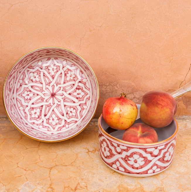 Handgemaakt: Elk stuk wordt zorgvuldig met de hand vervaardigd via een tiental essentiële stappen, waaronder gieten, patroon schilderen, emailleren en drie keer bakken, waarvan de laatste de schittering van echt goud onthult. Dit langdurige proces kan tot 10 dagen duren. Deze toewijding aan detail zorgt voor uitzonderlijke kwaliteit en benadrukt tegelijkertijd traditioneel Marokkaans vakmanschap.