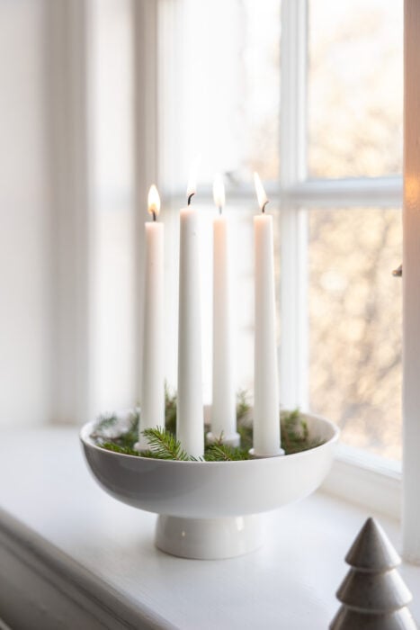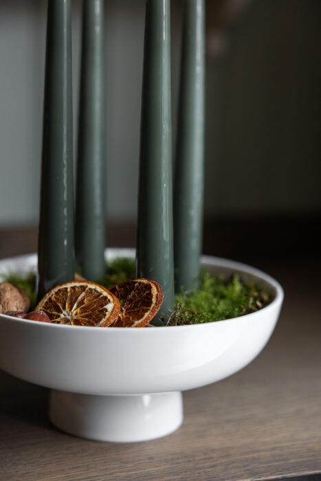 Kandelaar van geglazuurd keramiek. Versier GRANHAMMAR met mos, kegels of zuurstokken voor een gezellig kerstgevoel.