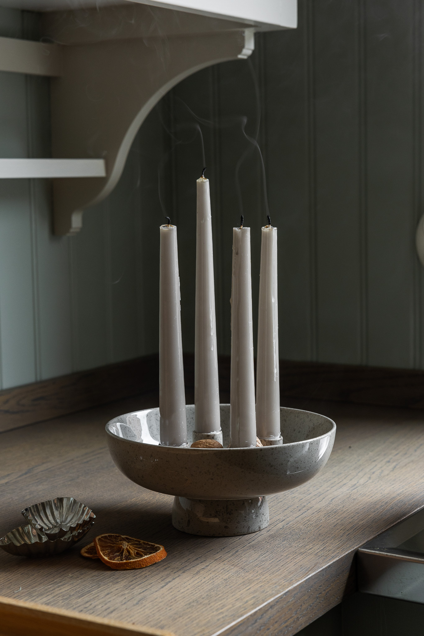 Kandelaar van geglazuurd keramiek. Versier GRANHAMMAR met mos, kegels of zuurstokken voor een gezellig kerstgevoel.