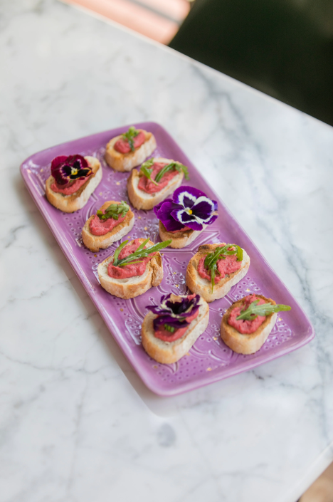 Verfraai uw zoete en hartige creaties met de lilagouden Long Rectangle Tray, de chique bondgenoot om taarten, cakes of quiches met elegantie te presenteren.