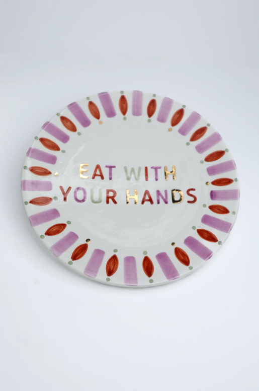 Ontdek CHABI CHIC, GRANDE ASSIETTE LES PHRASES EAT WITH YOUR HANDS GOLD, een van de meest populaire en emblematische stukken van het merk. De perfecte centerpieces voor uw tafel, ze bieden de ideale speeltuin voor Chabi-Chic Mix&Match. Door hun veelzijdigheid kun je ze eindeloos mixen en matchen, of het nu gaat om een totaallook of als mismatch, en het effect is altijd opvallend.
