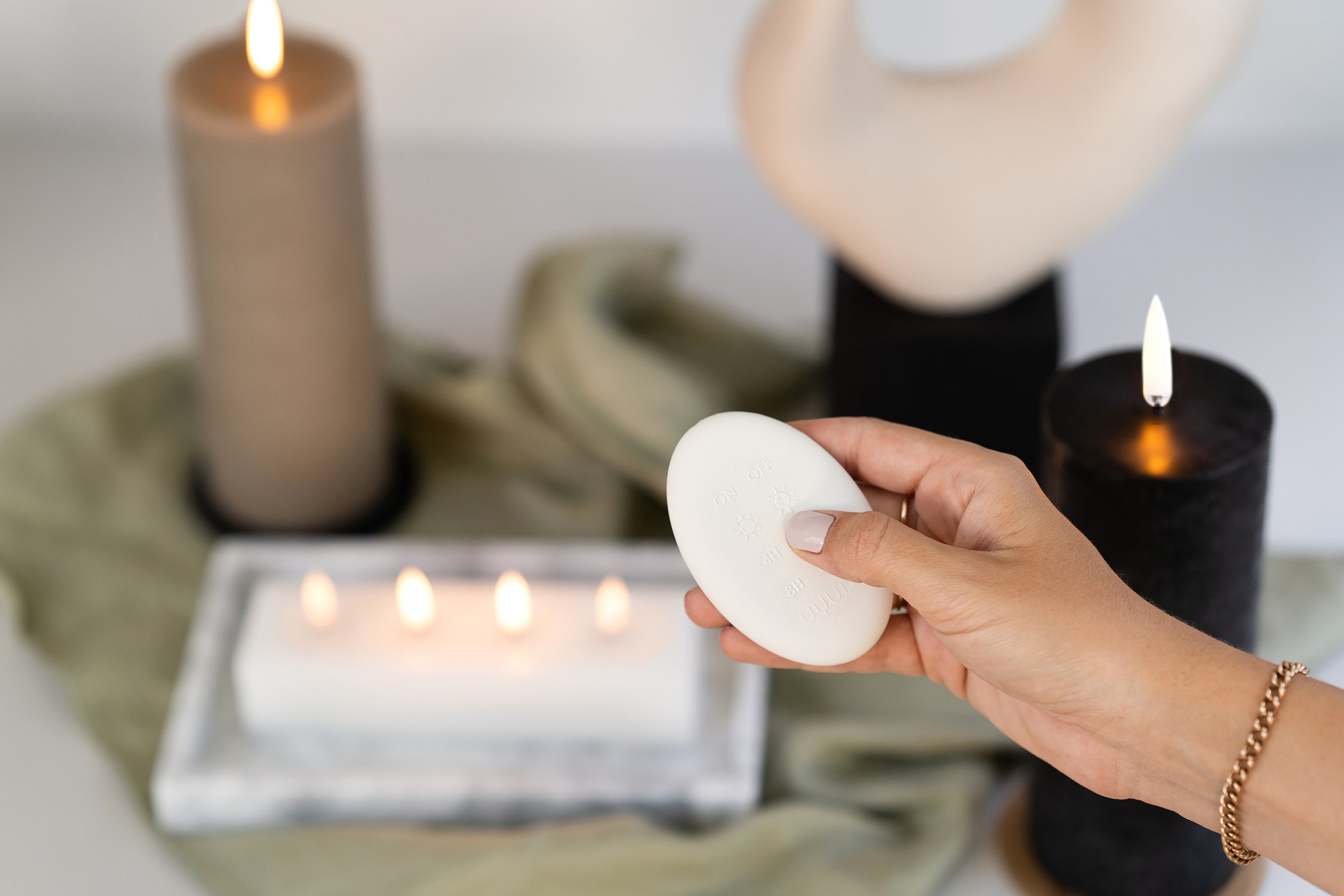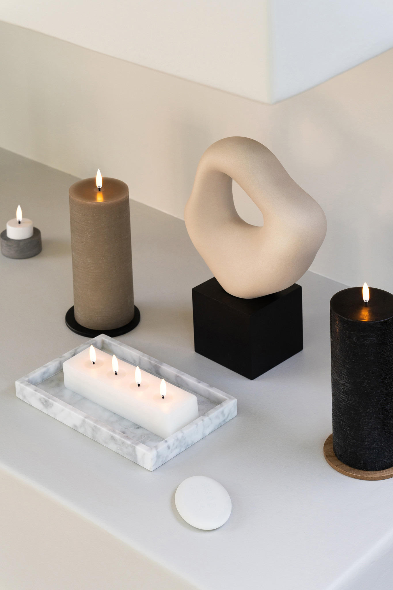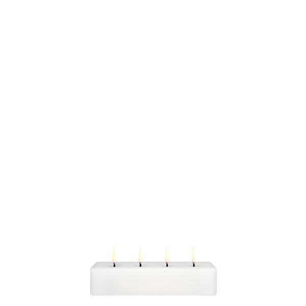 Meer kaars. Meer glans. Het Quattro Block is een stijlvol pronkstuk dat zowel licht als omgevingswarmte toevoegt aan je huis. Het is met de hand uitgesneden uit nieuwe was door onze bekwame vakmensen en wordt geleverd met 4 vlamloze LED-lontjes. Meer kaarsen, meer glans, meer stijl en minder gedoe, met een gebruiksvriendelijke afstandsbediening waarmee je je kaars met één druk op de knop aan en uit kunt zetten.