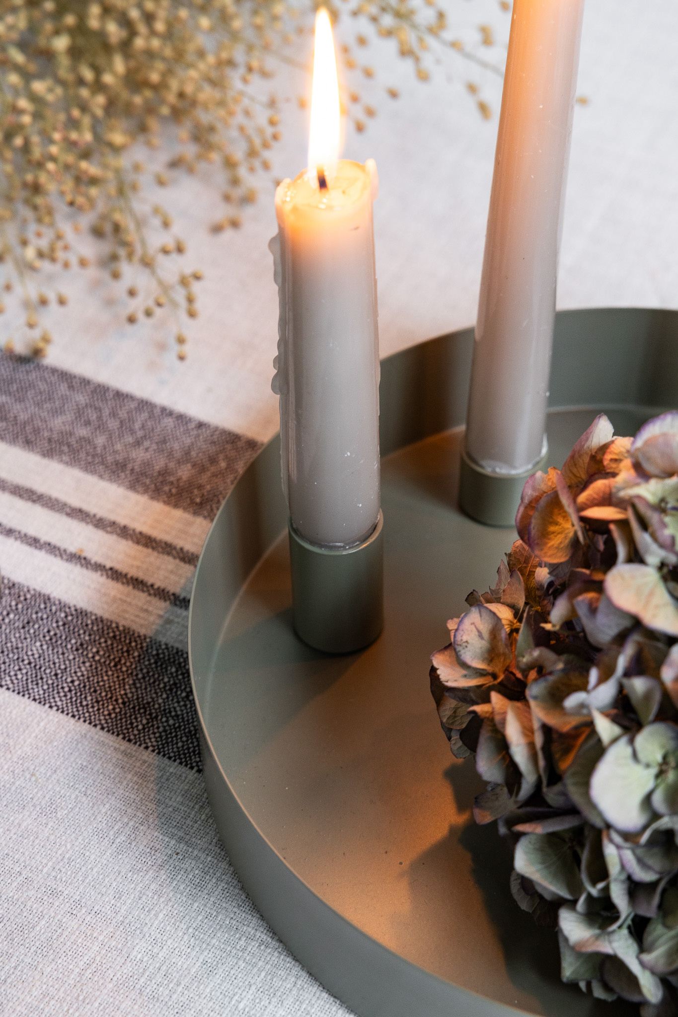 SUND, nu verkrijgbaar in een kleiner rond ontwerp, is een strakke metalen kandelaar. Dankzij de magnetische kandelaars pas je het uiterlijk van de kandelaar aan naar jouw wensen. Vul hem met bloemen, dennenappels, stenen of mos en creëer je eigen seizoensarrangement.