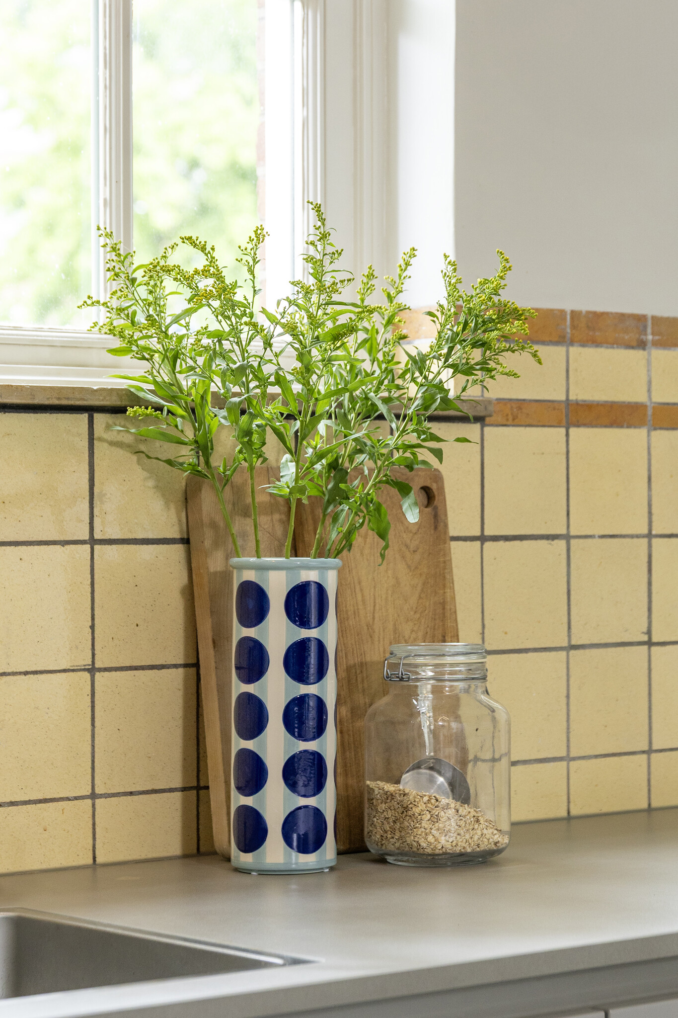 Geïnspireerd door vintage folkquilts, brengen de patchvazen warmte en karakter in elke ruimte. Gemaakt van steengoed en met de hand beschilderd met ingewikkelde details, elke vaas is een uniek stukje vakmanschap. Of ze nu als set staan of solo gestyled, ze vormen een opvallende toevoeging aan je interieur. Kies jouw favoriet of mix alles door elkaar!